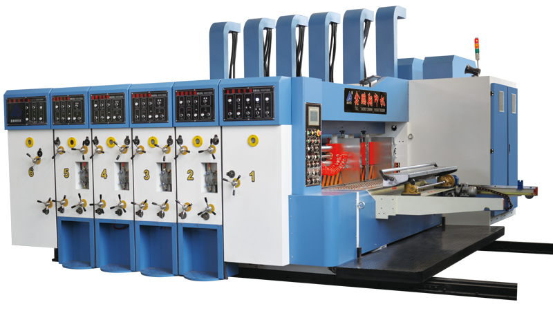 Function and Characteristics: ◎ All the main electric appliances of the whole machine adopt the product of Schneider made in France. ◎ Adopt lead-edge feeder system. ◎ Adopting helical gear driving, the gears are made from high frequency quenching and polishing-gear. ◎ All axles of roller must be chrome-plating in order to increase the hardness. ◎ The gears adopt shower type circular lubricating. ◎ This machine adopts PLC & touching screen. Multi functional control, and frequency conversion control machine which are precise and reliable. ◎ Automatically changes back to zero and correct the plate making. ◎ Adopting the mould piece designing. The multi-color printing machines can be combined and linked in any way. ◎The side blocking plank of the feeding department and the grooving department can be adjusted electrically. ◎Cutter mould roller and soft roller adopt International standard size, with easy purchasing mould and cushion. ◎With compensating device to follow and compensate the speed of cushion roller, making sure that the sizes of the box and the cutter mould are the same. Technological parameter: