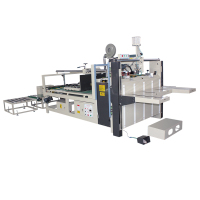 Function and Characteristics: ◎ Average glueing speed should be 8000-10000pcs per min, whichimproves productivity greatly. ◎ Two workers should assist to deal with whole producing line.Paperboard feeding, glueing, folding, adjusting, acounting can bedone automatically. ◎ Adopted leather belt delivery feeding with airdraft. ◎ All convery belts were tooth nailed for accuracy. It equipped repressing function so that even more accurate when folding. ◎ Automatic re-adjusting if happen paper skew. Lowen defective rate. ◎ Improving folding accuracy if happen paper skew through differentialadjusting function. Scissors shapetail could not happen. ◎ Automatic accounting, shape adjusting then stacking. All carton canbe piled up according to a cartain quanlity. ◎ Can match with automatic strapping machine.